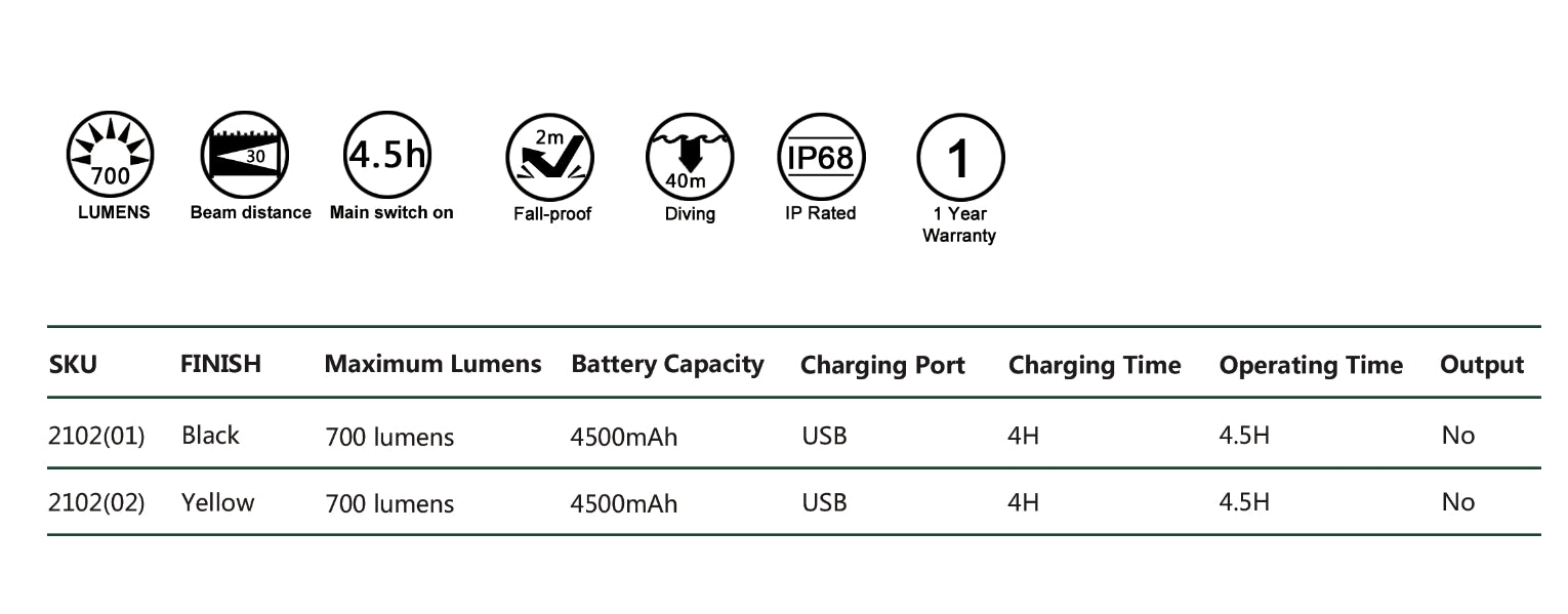 With 3500 lumens and a 550-meter beam range, it offers exceptional brightness. Enjoy 7 hours on high mode or 72 hours in eco mode. Waterproof to 120 meters (IP68), the F21 is reliable for extreme dives.